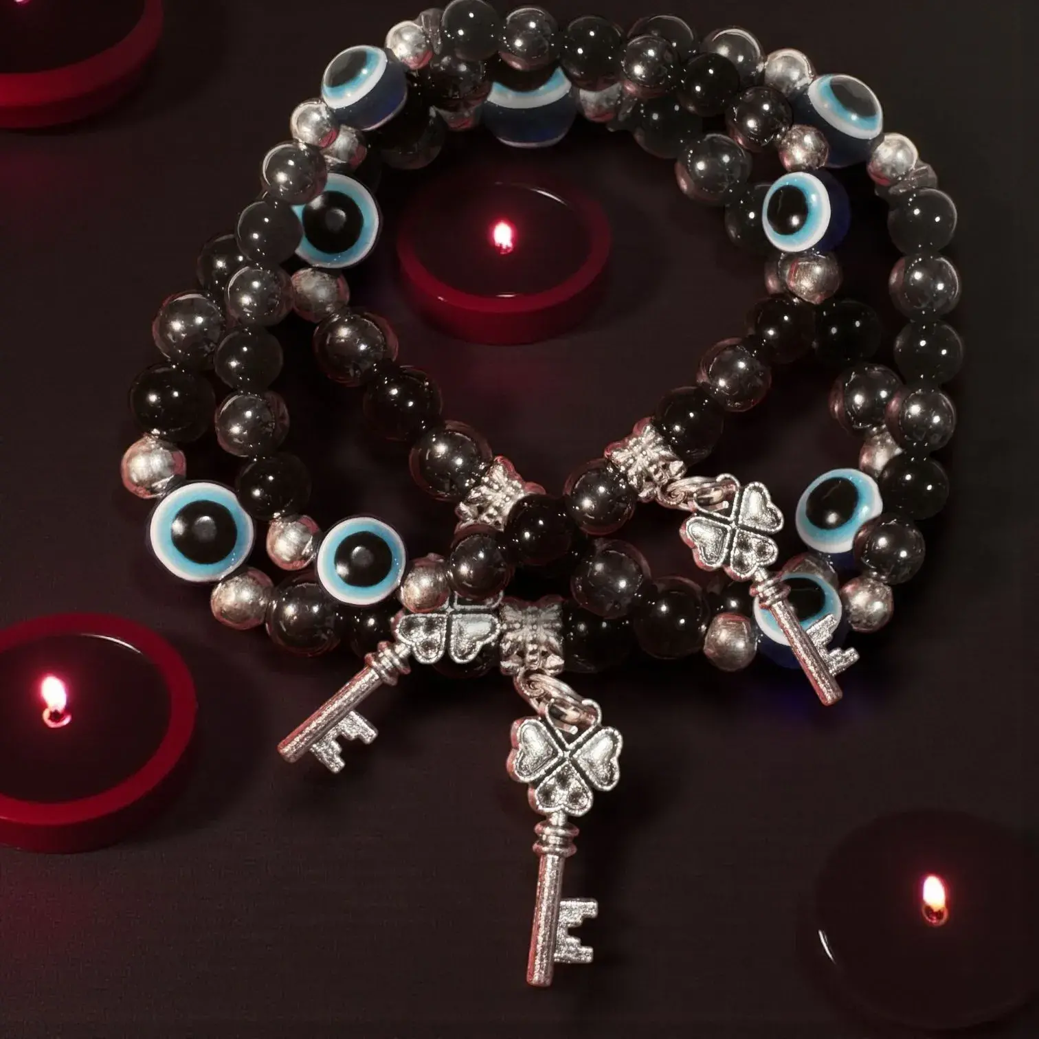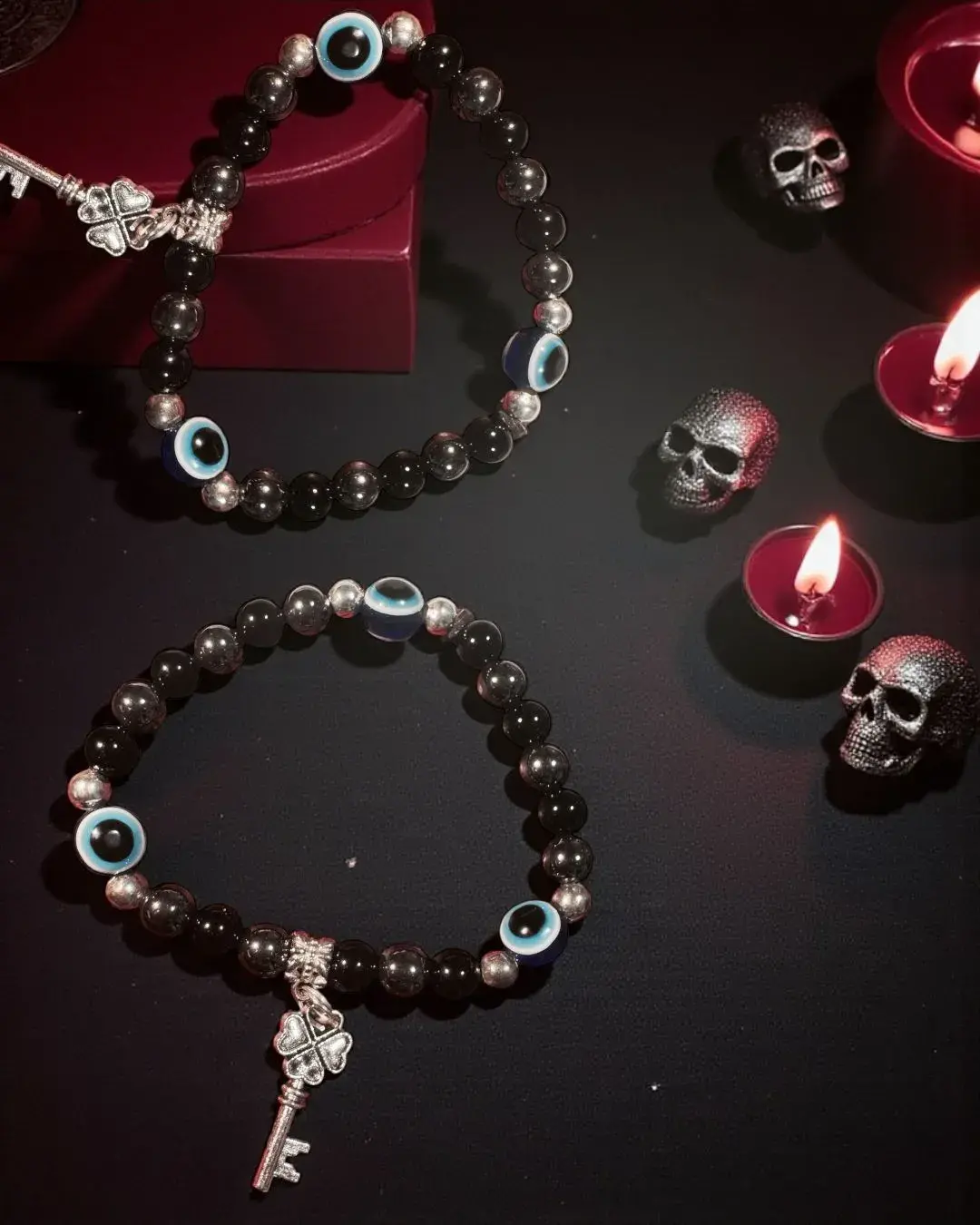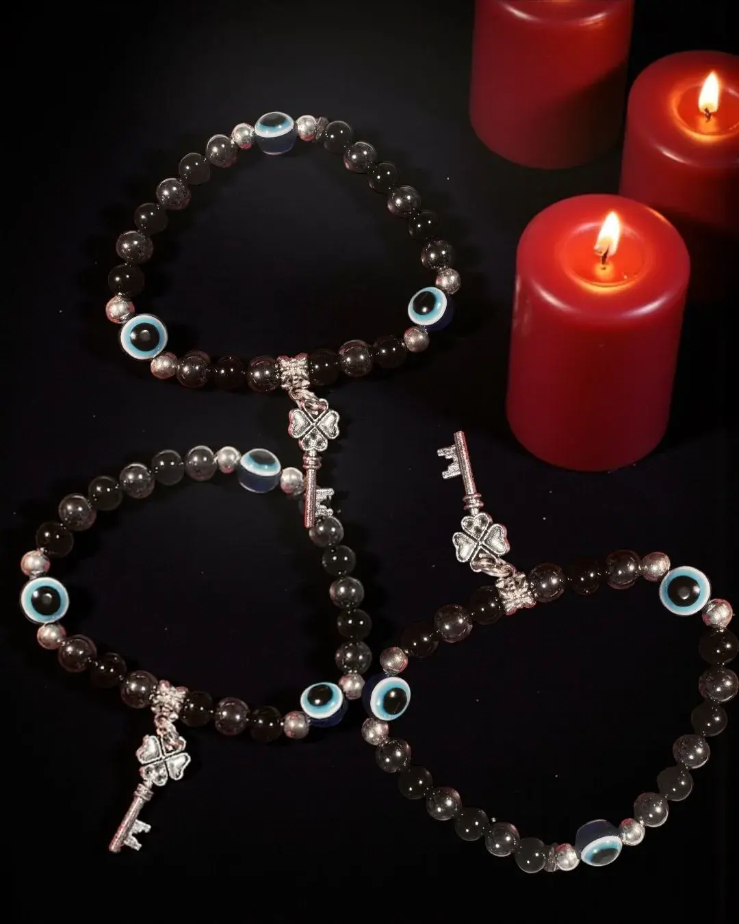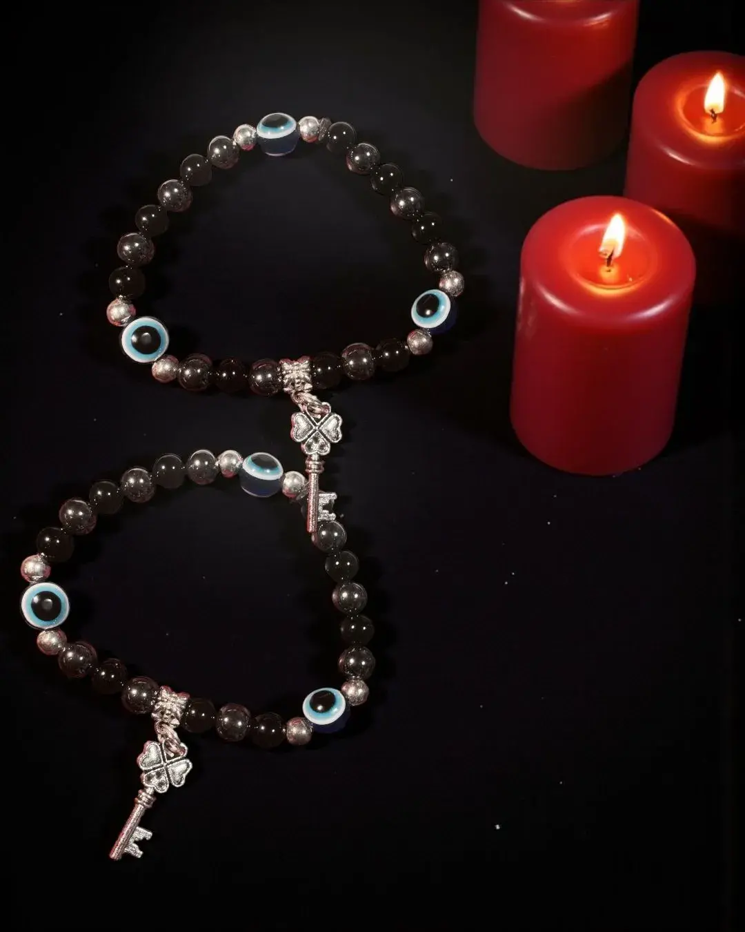 ⛤Entidades Trivia, elaborada con piedras energéticas ónix y hematite para la protección y fuerza espiritual.